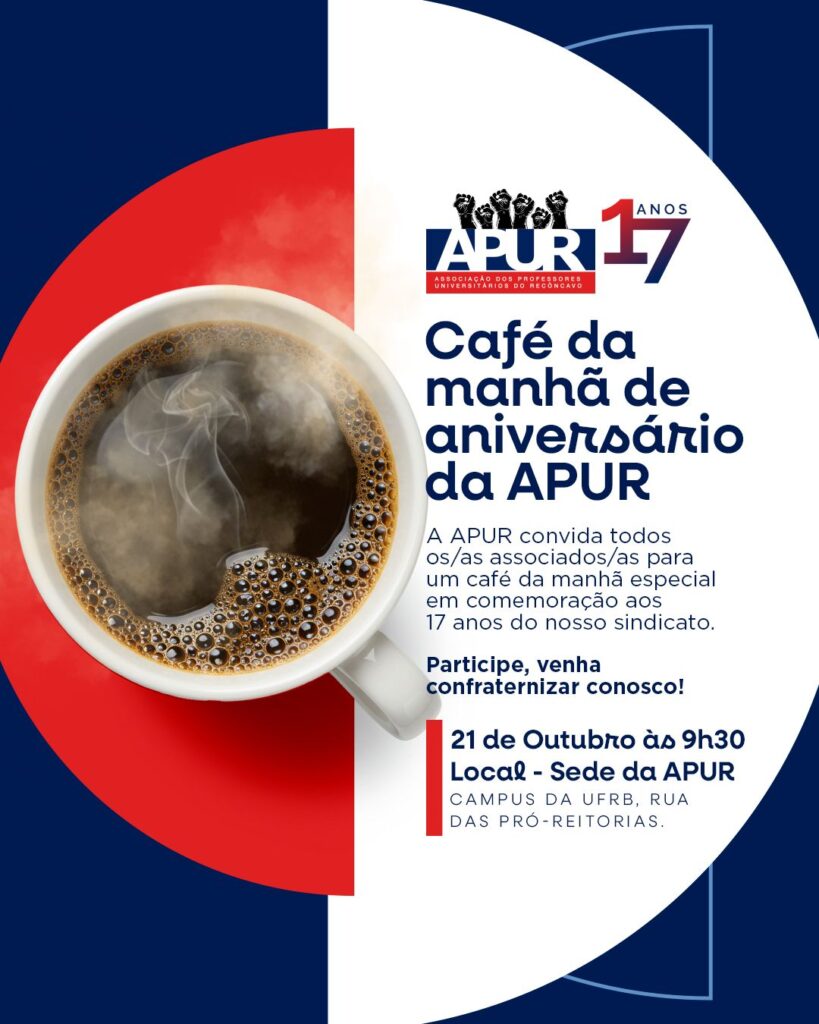 APUR convida filiados/as para café da manhã em comemoração aos 17 anos do sindicato