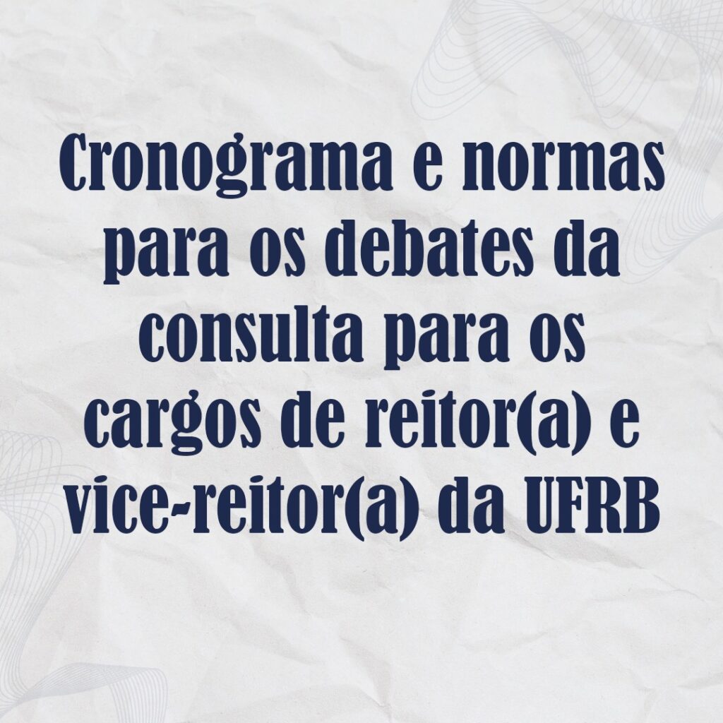 Comissão Especial torna público o cronograma e normas para os debates da consulta para os cargos de reitor(a) e vice-reitor(a) da UFRB