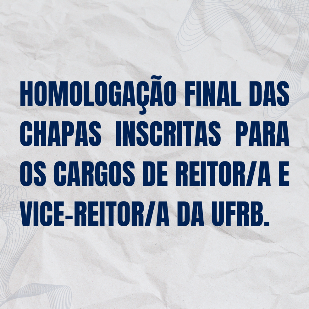 Comissão Especial torna pública a homologação final das chapas inscritas da consulta para os cargos de Reitor/a e Vice-reitor/a da UFRB