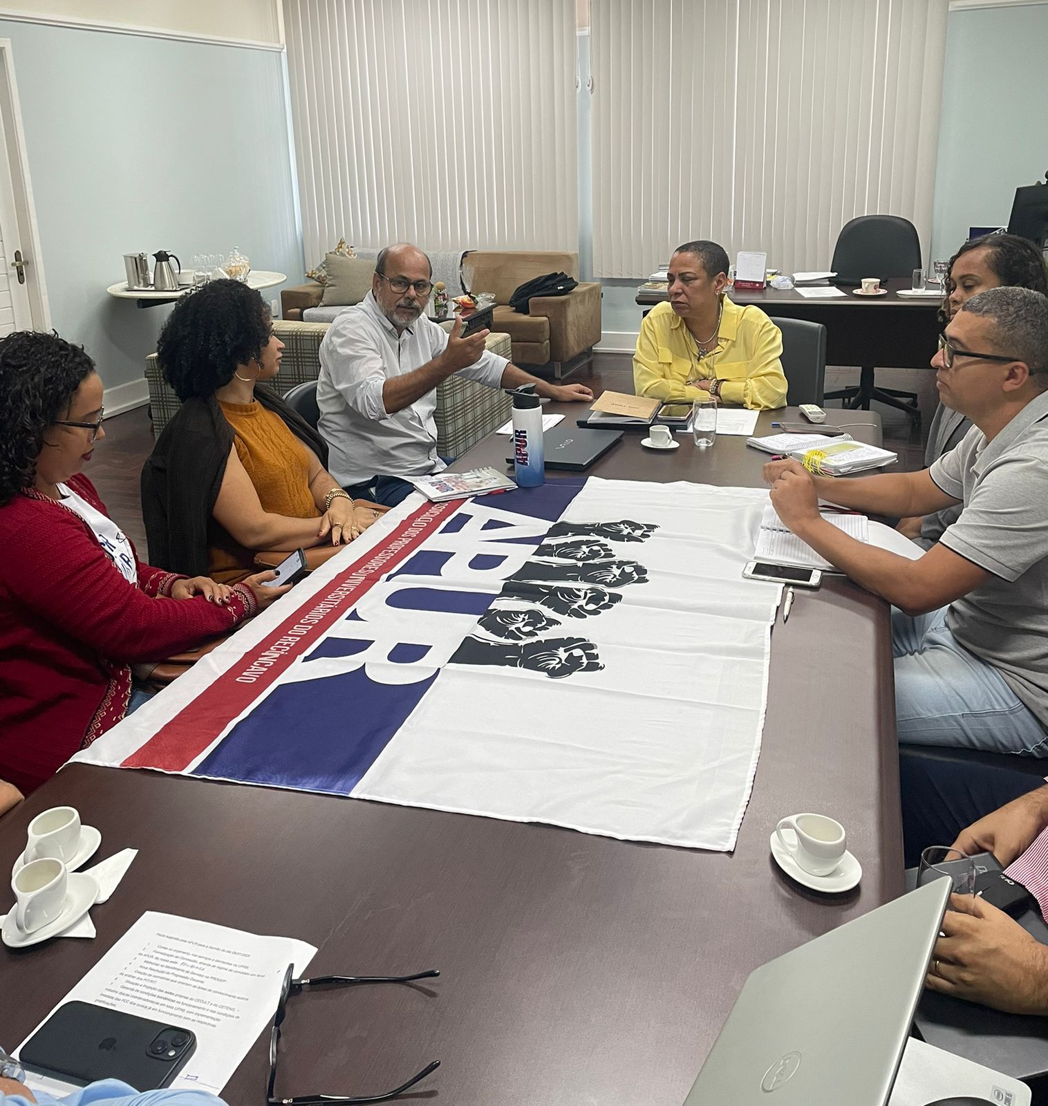 A Associação dos Professores Universitários do Recôncavo (APUR) participou de uma reunião com a Reitoria da Universidade Federal do Recôncavo da Bahia (UFRB), no fim da manhã da última segunda-feira, 28, em Cruz das Almas. O encontro foi o primeiro entre a nova Diretoria sindical e a gestão universitária. Os/as representantes discutiram os cortes orçamentários que a universidade vem sofrendo e diversas pautas docentes, incluindo a Estatuinte, o PIT e o RIT, melhorias nos canais de atendimento da PROGEP, dentre outros.