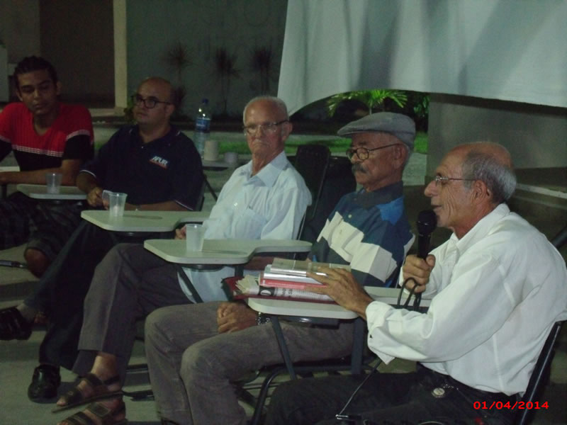 Apresentaram a sua rica experiência Aderbal Caetano Burgos, antigo militante da POLOP e uma das lideranças políticas de cahoeira ( foi condenado a prisão, mas consegui escapar ficando na clandestinidade durante mais de 10 anos). O companheiro Reinaldo da terra vermelha, que participou da luta pela reforma agrária na região nos anos 60, e por fim Milton, ainda membro do PCB que relatou a sua prisão e a conjuntura política da época.