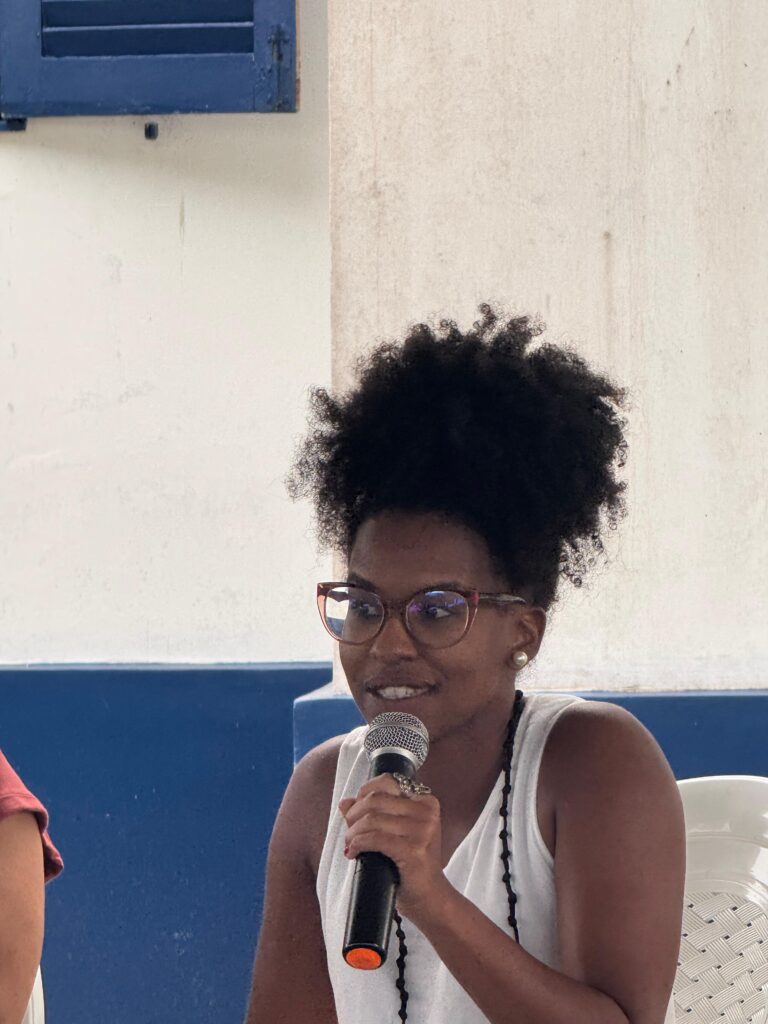Yérsia Souza de Assis durante fala sobre relato de experiências de combate à violência fora da universidade/Divulgação