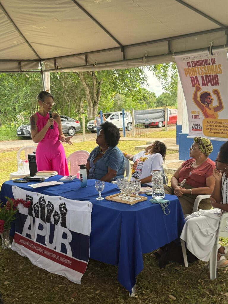 A Associação dos Professores Universitários do Recôncavo (APUR) realizou, na última terça-feira (31/04), o IV Encontro de Professoras. O evento, que teve como tema “Prevenção e enfrentamento da violência contra as mulheres na universidade”, contou com a participação de docentes que debateram violências contra a mulher, racismo e as desigualdades de gênero. A iniciativa da APUR faz parte da campanha sindical “Mulheres vivas, feminicídio não!”.